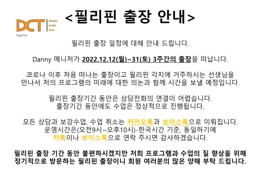 2022년 12월 필리핀 출장에 대한 공지사항입니다.
