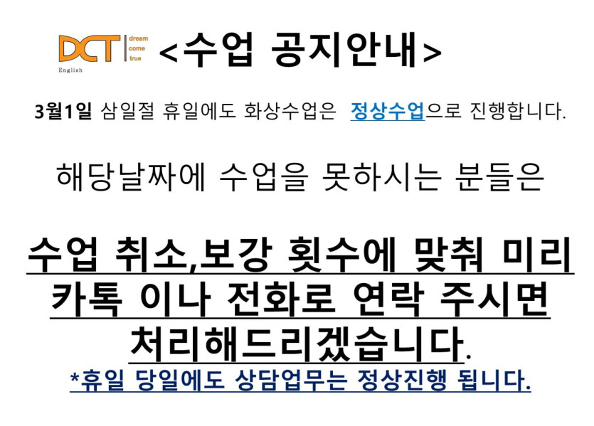 삼일절 휴일에도 정상수업 진행합니다.^^